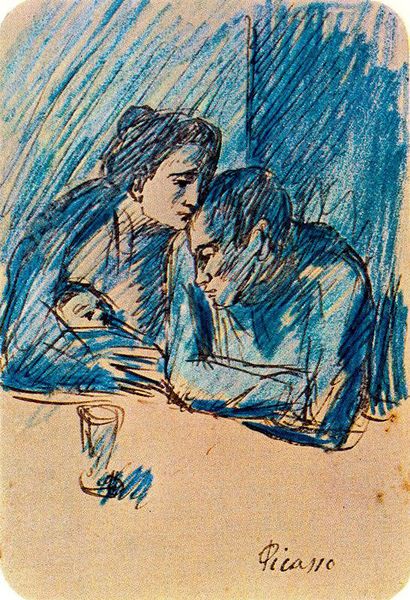 Curator: Here we have Henri de Toulouse-Lautrec’s painting "The Two Girlfriends," dating from 1894. It’s currently held at the Musee Toulouse-Lautrec in Albi, France. The artist worked with oil paint in this exploration of intimism, portraying a seemingly private moment. Editor: It feels so raw. There’s an immediate sense of the informal here—the sketched lines, the muted colors… I am drawn to the apparent tenderness between the two figures, a kind of shared intimacy that feels defiant for its time. Curator: Absolutely. The loose brushstrokes are characteristic of the Post-Impressionist movement and the sense of immediacy creates an incredibly potent depiction. But for me, beyond that, it feels like there’s an echo of ancient Roman sarcophagi imagery. See the way the figures are arranged in almost perfect symmetry within the frame. Editor: I see what you mean. Their arrangement feels staged, while at the same time, the women look so real and the work feels documentary. Perhaps Toulouse-Lautrec, through their closeness, challenges the prevalent norms around female relationships, offering a glimpse into lives often obscured or outright denied. Curator: Consider too, that in those days artists typically sanitized depictions of human emotion, whereas Lautrec seemed dedicated to capturing raw feeling in a way few were prepared to. Look at how their faces touch—the one almost burrowing into the shoulder of the other, a common motif of maternal nurturing but made modern and complex with the relationship between the two adults. This painting preserves something powerful. Editor: Yes, precisely. It gives agency to a lived reality. I wonder, even, what power dynamics are at play between the two figures—the reclining one seems more subdued. We see a subtle negotiation of power through gesture and pose that complicates any simple reading. Curator: A powerful work. The enduring influence on portraiture is evident. Its focus on revealing, even celebrating, relationships that were considered unconventional allows us, as modern viewers, to feel connected to them, despite their time and place in history. Editor: It serves as a visual record of lives that history too often overlooks or marginalizes. Art like this reminds us of our ongoing responsibility to recognize and value diverse experiences.