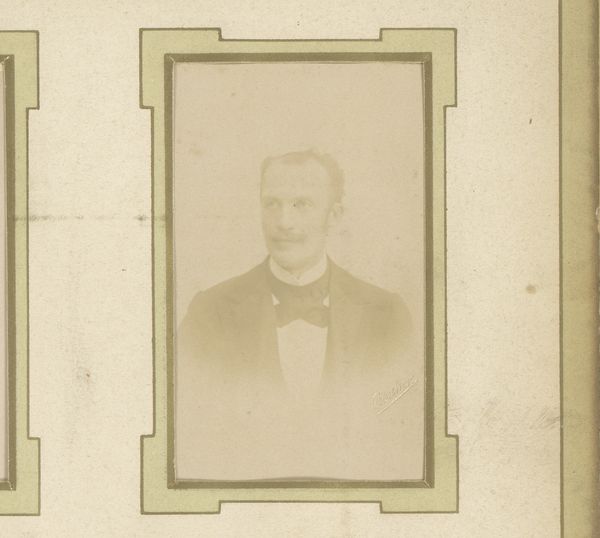 This is a portrait of an old man with a mustache, made by Photographie Universelle. The photograph's sepia tones evoke a sense of the past, connecting us to an era when photographic portraiture was becoming increasingly accessible. Reflecting on the sitter’s identity, his neat attire and dignified posture offer clues about his social standing. The photograph invites us to consider the cultural norms that shaped representations of masculinity and age during the time it was made. What stories does he carry? The act of capturing someone's image was a significant event, and the resulting photograph served as both a personal memento and a document of one's place in society. As we look at this image, we are reminded of our shared humanity and the importance of preserving individual stories within the broader historical narrative.