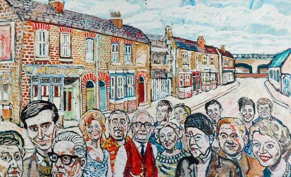 Oliver Kilbourn's "Station Bridge" presents a street scene with a bustling rhythm. The composition is dominated by ochre, the brushstrokes are thick, and the perspective is compressed, creating a sense of immediacy. Kilbourn's treatment of space is interesting; there is a dynamic tension between foreground and background. Figures and vehicles populate the scene, yet they are rendered with a certain flatness. This challenges traditional perspectival depth, pulling the viewer into the same plane as the painting itself. The subdued palette serves to unify the painting's disparate elements, while also emphasizing the everydayness of the subject matter. Kilbourn seems to be consciously rejecting the grand narratives of academic painting, choosing instead to depict the quiet drama of working-class life. The painting's structure invites us to consider how form shapes content, and how the artist uses the semiotic system of painting to represent a specific vision of society. This challenges fixed meanings and encourages new ways of thinking about space, perception and representation.