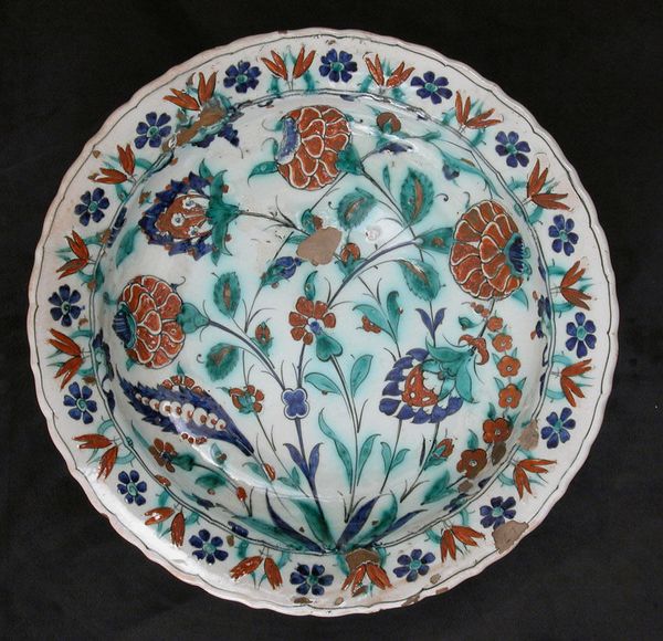 This faience plate was made by Jean-Baptiste Guillibaud in Marseilles, France. The making of faience involves a number of distinct stages, starting with the potter’s wheel and then moving on to the painter’s studio. A soft, porous earthenware clay body is shaped and fired, then coated with a tin-based glaze, creating a bright white surface. It is on this canvas that the painter executes the design with colorful metal-oxide pigments. After a second firing, the colors are fixed, and the plate is ready for use. The skilled labor to make an object like this was divided, one worker throwing the clay and another painting the intricate floral patterns. The overall composition, a central bouquet surrounded by a geometric border, reflects a desire to elevate the status of ceramics, moving it away from its utilitarian origins towards the realm of fine art. But keep in mind, the entire enterprise was driven by consumer demand – part of a larger commercial ecosystem of production and consumption that gives this humble plate its enduring significance.