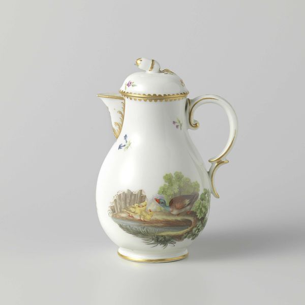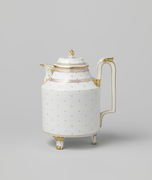 This milk jug, made by the Faubourg St. Denis manufactory, presents us with delicate foliate scrolls that encircle the porcelain like a whispered promise of nature's bounty. These are not merely decorative frills, but echoes of ancient celebrations, of wreaths offered to deities, and of life's cyclical dance. Observe how these golden leaves, reminiscent of laurel or myrtle, trace their ancestry back to Greco-Roman classicism, symbols of honor and eternal life. We find their kin adorning the heads of victors and poets, immortalized in stone reliefs and mosaics. Yet, here, on a humble milk jug, they whisper a more domestic tale. Consider how such motifs, once emblems of grand narratives, become softened, domesticated, and absorbed into the daily ritual of pouring milk. This transformation speaks to the human need to imbue the mundane with a sense of continuity and aspiration, linking our everyday lives to a broader cultural memory. These symbols persist, ever-changing, always echoing, reminding us of the layered, cyclical nature of human experience.
