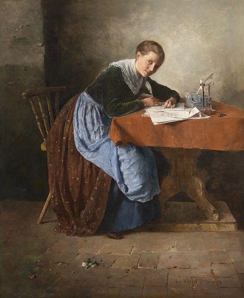 Johannes Vermeer painted "A Lady Writing," an oil on canvas, sometime in the mid-17th century. Immediately, our eye is drawn to the interplay between light and shadow that defines the forms within. The textures of the fur-trimmed jacket contrast with the smooth planes of her face, creating a vibrant surface. Vermeer's composition balances foreground and background elements, using a limited palette to enhance the painting's contemplative mood. The dark tonality of the upper portion pushes the viewers focus towards the details of the writing desk, with a semiotic interplay between objects and meaning. The pearls on the table and the act of writing may point towards wealth, culture, communication and knowledge. Consider how Vermeer uses light, form, and texture not just to represent the scene but to evoke questions about perception, representation, and the act of seeing itself. The artist invites us into a world of quiet contemplation, asking us to consider how we construct meaning through our gaze.