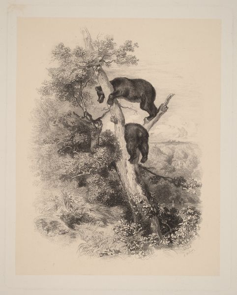 Karl Bodmer’s print, ‘Les ours’, presents a scene of bears climbing a tree, rendered with meticulous detail. Bears, throughout history, have symbolized primal strength, courage, and a connection to the untamed wilderness. Consider the enduring presence of bear imagery across cultures. From the bear cults of ancient civilizations to its representation in European heraldry, the bear embodies raw power. Even in children’s stories, the figure of the bear oscillates between fearsome predator and comforting protector, tapping into our collective unconscious. Observe, for instance, how the upward movement of the bears in Bodmer's print mirrors the ancient motif of ascent, a universal symbol of spiritual or physical striving. The act of climbing suggests a desire to reach a higher state, echoing the imagery found in religious and mythological narratives worldwide. It evokes a deep-seated, primal response within us, stirring a sense of awe and respect for the natural world. Thus, Bodmer's ‘Les ours’ is not merely a depiction of wildlife, but a powerful engagement with archetypal symbols, inviting viewers to confront their own relationship with nature and the primal forces that continue to shape our collective psyche.