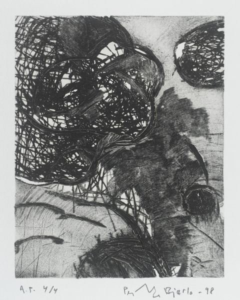 Susan Rothenberg created this artwork titled Red Bamboo using woodcut printmaking techniques. Notice the bamboo stalk, a symbol deeply rooted in Asian art and culture, often representing resilience and flexibility. Its presence here is more than just botanical; it embodies a dialogue between Eastern and Western artistic traditions. Consider how bamboo appears in classical Chinese paintings, where it symbolizes moral integrity. Here, the bold red color gives it a very different energy, something more akin to the life force, or 'élan vital,' as Bergson would say. The grid below could symbolize an ordered Western tradition, almost being struck by the power and life of the bamboo stalk. The recurring motifs reflect our subconscious desire to connect with primal forces. They remind us that art is not just about what we see, but about the emotional and psychological resonance embedded within. The image engages viewers on a deep, subconscious level, calling upon the viewer's own experiences and subconscious understandings of the symbols it presents. These elements have resurfaced, evolved, and taken on new meanings in different historical contexts.