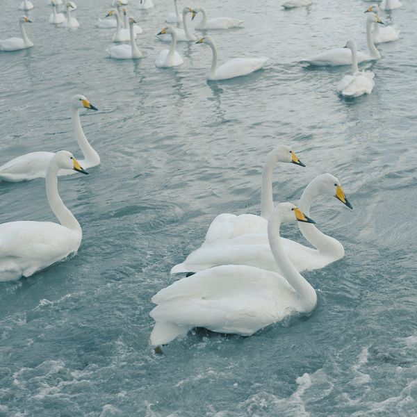 Editor: This painting is called "Birds of a Feather" by Lucia Heffernan, made with acrylic paint on canvas. There's something very striking about the uniformity of the pink flamingos set against the teal water and sky; it's almost unsettling. What do you see in this piece? Curator: Beyond the visual appeal, I think this image engages with important ideas about identity and belonging. These flamingos, so similar in appearance, evoke questions about conformity and the pressures to assimilate. Do you see any visual cues suggesting this interpretation? Editor: I hadn't thought of that, but the birds' identical coloring and the way they seem to move as one certainly hints at it. Does the artist's choice of naive art affect our interpretation? Curator: Precisely. The style amplifies the idea of enforced homogeneity. This isn't just a painting of pretty birds. It raises important questions. What happens when individual expression is stifled for the sake of the group? And what are the power dynamics at play within such a setting? Editor: So, it's a commentary on society's expectations? It's interesting that what I initially saw as beautiful and serene could actually have a deeper, more critical message. Curator: Exactly! Art, even when seemingly simple, often functions as a mirror reflecting our own societal structures and biases. Hopefully you and the audience are seeing and questioning something more about the piece's purpose. Editor: This was truly illuminating, prompting a different view. Curator: Wonderful. That's the aim of an encounter with art, and to engage viewers as an advocate for cultural discourse and social understanding.