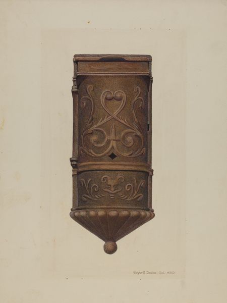 Manuel G. Runyan made this "Marble Ornament" with an understated color palette, where beiges and browns blend into subtle gradients. I love the way Runyan embraces the process, allowing the washes to settle where they may, hinting at the marble's natural variations. Look at how Runyan captures the texture! The paint is applied in thin washes, creating a sense of depth and volume, but also giving the piece an airy, weightless feeling. The contours of the ornament are traced with a fine brush, emphasizing its elaborate form against the flat surface. What's particularly interesting is the slight irregularities in the paint application. Here and there, you can see drips or variations in tone, giving the piece a handmade, almost provisional quality, emphasizing the physical act of painting. This piece reminds me a bit of the architectural studies of Charles Sheeler, but with a softer, more intimate touch. It feels like Runyan is inviting us into a quiet conversation about form, texture, and the subtle beauty of everyday objects.