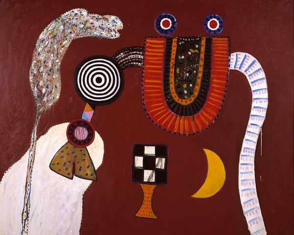 Eileen Agar painted "Lewis Carroll with Alice" with oil on canvas. The way Agar approached the surface really interests me; it is a mosaic of geometric planes and patterned textures. Each colour seems to vibrate against its neighbour. The painting is built up of flat shapes, but it still feels spatial, like a stage setting for a play. Take a look at Alice’s face, split into turquoise and yellow sections, it's a masterclass in abstract portraiture. The ears are like jokey afterthoughts, daubed with colourful blobs. In fact the whole thing feels light and playful, there is a sense of humour. Agar’s approach reminds me of Francis Picabia, particularly his use of flat colour and collage. Ultimately, Agar’s painting reminds us that art is not about perfect representation but about opening up new possibilities for seeing and feeling.