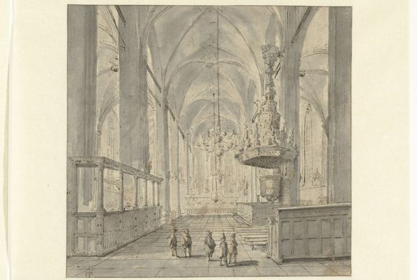 Johann Ludwig Ernst Morgenstern made this drawing of a gothic church interior in Germany in the late eighteenth or early nineteenth century. The image presents an interesting interplay between the grandeur of religious architecture and the figures of everyday people within its space. The use of sepia tones and the detailed rendering of gothic arches and soaring vaults evoke a sense of historical depth. The church, a powerful institution, is depicted not merely as a monument but as a space of social interaction. Figures within the church engage in various activities, suggesting the negotiation of sacred and secular life. The architecture of the church itself is a visual code, referencing the cultural values and historical narratives associated with religious institutions. To fully appreciate the artwork, we can study the histories of religious institutions in Germany, architectural trends, and the socio-political context in which Morgenstern created the drawing. Understanding art requires the examination of the social and institutional forces that shaped its creation and reception.