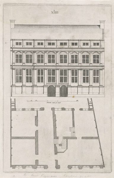 Curator: Here we have "Vertical Section of a Four-Story House with Greek Wall Ornament," a drawing and print from somewhere between 1800 and 1900, now residing here at the Met. It’s ink on paper and quite striking. Editor: Striking is one word for it. Austere comes to mind. It’s as if all the life has been vacuumed out, leaving only the facade. The geometry is so rigid. Curator: Well, it's an architectural drawing, meant to be precise. Consider the labor involved in producing these intricate patterns by hand. Someone meticulously drafted each line, each window frame, revealing the prevailing building practices and aesthetic values of that era. The ornamentation evokes classicism and speaks to social aspirations. Editor: But does the medium serve the subject? The stark, flat rendering, emphasizes the symmetrical grid and rhythmic repetition. It gives it this feeling of infinite, inhuman scale—less a place for humans than an exercise in pure form. Curator: True, but this abstraction could be seen as a critical commentary on industrialization. As urban environments rapidly evolved, drawings like this may have served as a way to negotiate and reconcile the tension between craftsmanship and mechanization. Consider where the materials might have been sourced and who would have had access to live or work here. Editor: It also reminds me of stagecraft, everything is set design and illusion. Notice how the heavy lines and the monochromatic palette enhance the artificiality of it all, revealing it’s a carefully constructed image. Curator: Which brings us back to process—the materiality and method illuminate not only the artistic values of the period, but also shed light on its socio-economic landscape. The means of production really dictates everything we see here. Editor: And in its meticulous design, and very formal balance, this building manages to distill something universal and enduring about the pursuit of order and beauty. Curator: Right, the way labor and resources are channeled reflects so much more. Editor: And that clarity reveals layers to discover again and again.