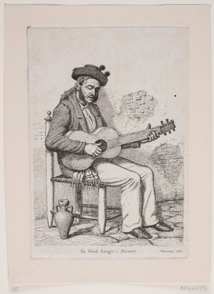 This is Johann Wilhelm Kaiser’s "Serenade," an image imbued with the cultural echoes of music and courtship. Notice the lute, a symbol of harmony and romance, its form familiar from Renaissance paintings, where it often accompanied scenes of love. Its presence suggests a serenade, a nocturnal expression of affection, deeply rooted in the rituals of courtship. The musician, with his elaborate hat and upward gaze, embodies the spirit of the serenader. This figure is not merely playing music, but is also channeling a potent blend of desire and longing, emotions that resonate across centuries. The image evokes a powerful psychological response, tapping into our collective memory of romantic traditions. Like a recurring dream, the motif of the serenade resurfaces in art and culture, each time colored by the nuances of its age. The lute, once a symbol of courtly love, evolves, its melodies echoing through time, transformed but never lost. Thus, Kaiser's work becomes a window into the enduring power of symbols and their ability to traverse time, engaging us in a perpetual dialogue between past and present.