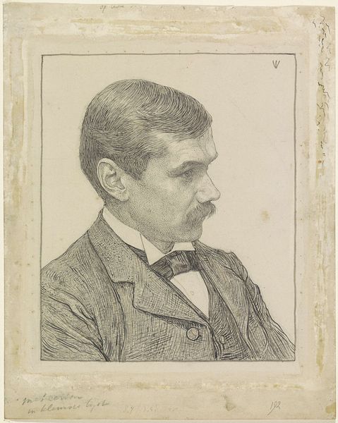Willem Witsen etched this portrait of Hein Boeken, now held at the Rijksmuseum. The subdued palette emphasizes the solemn expression, drawing our attention to the subject’s gaze and carefully groomed mustache. Such meticulous attention to personal appearance echoes through centuries, reminding us of classical sculptures where emperors and philosophers alike displayed carefully arranged beards as symbols of wisdom and authority. This pursuit of order can also be understood through a psychoanalytic lens, reflecting a deep-seated need to control the chaos of inner life by imposing order on the external. Observe how the sternness in Boeken's eyes is mitigated by the slightly disheveled hair, subtly introducing an element of the untamed into the otherwise composed persona. This deliberate contrast embodies a recurring dance between reason and instinct, evident across cultures. This portrait captures more than a likeness; it reflects the ongoing human endeavor to reconcile our internal complexities with external expectations.