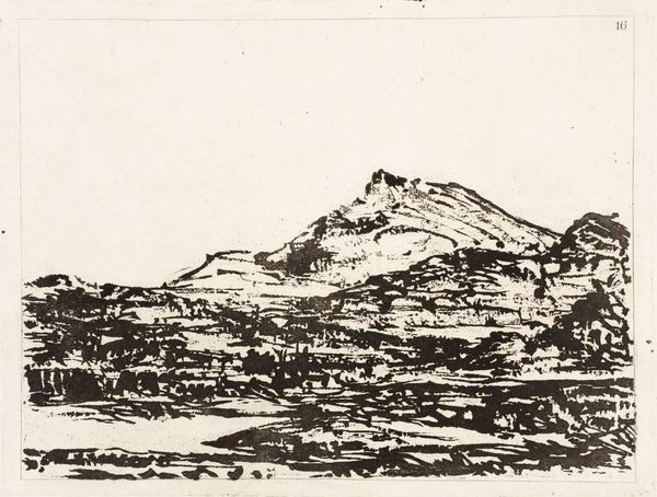 Editor: Here we have Alexander Cozens’ "13. A Hollow or Bottom," made sometime in the 18th century. It's a landscape in ink, and it feels incredibly raw and immediate. What do you see in this work? Curator: I see a landscape, yes, but also a challenge to the very notion of landscape as objective representation. Cozens was working in a time of empire, where landscapes were often used to justify colonial expansion, framing the world as something to be conquered. Editor: So, this abstraction is a kind of resistance? Curator: Precisely! By reducing the landscape to its barest forms, Cozens is questioning that power dynamic. What does it mean to truly *see* a landscape, rather than just possess it visually? Editor: That gives me a lot to think about, it's more revolutionary than I first thought. Curator: Indeed, art can disrupt dominant narratives.