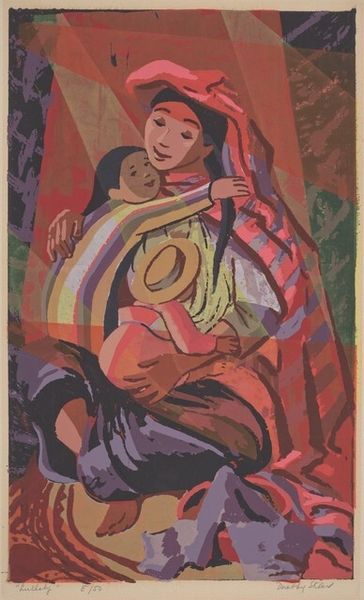 Geno Pettit made this print, River Lullaby, using blocks of color to create the image. The marks are flat and there is a real interest in the relationship between shapes. For Pettit, artmaking feels like a process of layering and building, kinda like how a song comes together. I love how the colors aren’t blended but bump up against each other, creating edges that are both soft and sharp. It gives the piece a tactile quality, as if you could feel the different layers of ink. Look at the waves, they create this rhythm that’s both calming and a little unsettling. It's easy to feel a connection to the whole scene through those marks. Thinking about other artists, maybe someone like Marsden Hartley, who also had this interest in folk art and simplified forms, comes to mind. But Pettit has a tenderness that's all his own, a lullaby in color and shape. What does this piece mean? That's for you to work out.