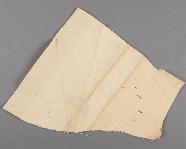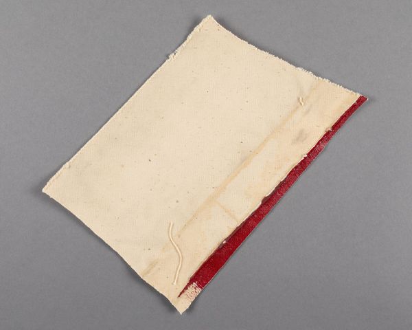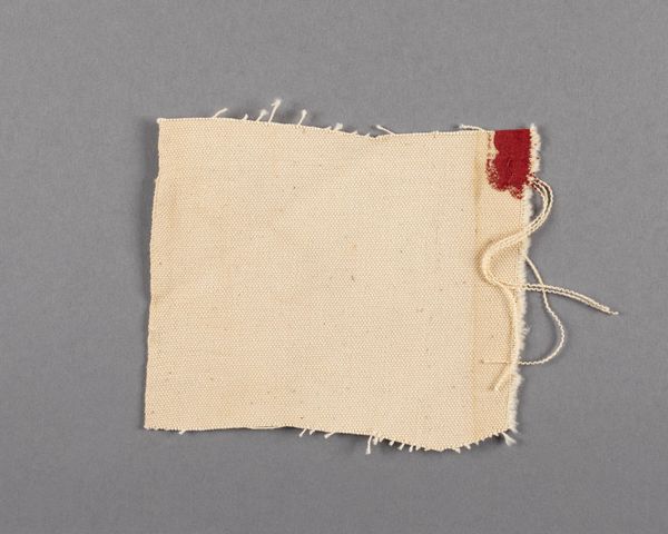 Editor: Here we have a small, irregular canvas fragment by Barnett Newman. Given its unassuming nature, what significance could this possibly hold? Curator: Consider the institutional frameworks that elevate even fragments to the status of art. How does the museum's presentation alter our perception, prompting contemplation on process, artist's intent, or even the deconstruction of artistic norms? Editor: So, its value lies more in its connection to Newman and the aura of the art world, rather than the inherent beauty of the object itself? Curator: Precisely! The fragment invites us to question the very definition of art, its market value, and the role institutions play in shaping cultural significance. Editor: That's a really insightful way to look at it; it makes me consider how much context influences our understanding. Curator: Indeed. By viewing this humble remnant, we unpack the complex layers of art history and its ongoing dialogue with society.