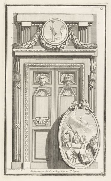 Jean Charles Delafosse's "Pruisen" etching presents a complex interplay of symbols deeply rooted in cultural memory. Above a pair of doors, one notes the cornucopia, a classical symbol of abundance, which promises prosperity. But look at the grotesque masks flanking the doors. These echoes of theatrical characters and ancient protective deities remind us of the duality of human experience and the presence of unseen forces. Grotesque masks were employed to ward off evil spirits, to instill fear, to entertain, and to provide ritualistic protection. Below, another framed image depicts a cross, a symbol of religion. A deflated lion lies prone on the ground next to the cross, conveying loss of power, the rooster crows next to it, and a figure in the background kneels in prayer. Together, these images suggest a deep, subconscious connection between symbols of power and the human quest for meaning. These motifs and gestures, passed down through history, engage viewers on a deep, emotional level. In this non-linear progression, these symbols resurface, evolve, and take on new meanings, reflecting our ongoing dialogue with the past.