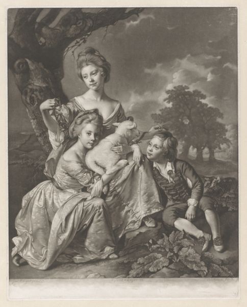 "Portret van Lady Rebecca Northwick en haar dochter Anne Rushout", was created by Thomas Burke in the late 18th century. During this period, portraiture served as a powerful means of asserting social status. Here, the serene depiction of Lady Northwick with her daughter offers a glimpse into the domestic sphere of aristocratic women. This work invites us to consider the limited roles prescribed to women of this era, particularly within the upper classes. Lady Northwick is portrayed in a manner that emphasizes her role as a mother, embodying ideals of femininity and domesticity. The presence of Anne further accentuates the maternal bond, reinforcing societal expectations placed upon women to bear and nurture children. Yet, there is a certain tension between the natural setting and the formal attire of the subjects. The garland of flowers held by Anne hints at innocence and purity, but also speaks to the constructed nature of these ideals. Burke’s portrait captures a moment of tenderness, but it also serves as a reminder of the constraints and expectations that shaped the lives of women like Lady Northwick and her daughter.