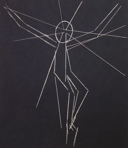 Editor: So, this is Harold Edgerton's "Foil Trick," a photograph. The figure is so stark against the black background, and those light trails are wild! How would you interpret this image? Curator: Edgerton's work here, and generally, really pushed the boundaries of what photography could capture, especially in the mid-20th century. It’s tempting to see this as purely scientific, but think about the cultural fascination with speed and technology at the time. It's about making the invisible visible, connecting art with scientific advancements. Editor: That's interesting! It’s more than just a cool trick; it reflects a cultural moment. Thanks! Curator: Precisely! Considering the public fascination with scientific progress really sheds light on Edgerton's work.