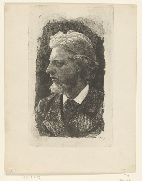 Jan Veth rendered this portrait of Jacques Perk using etching, a printmaking technique, in which a metal plate is coated with a waxy resist, and then scratched into with a needle. The plate is then submerged in acid, which bites into the exposed lines. Veth’s skill is evident in the detailed cross-hatching, creating tonal variation and capturing the texture of Perk's hair and clothing. The etched lines define the form, while the varying depths suggest light and shadow, lending a sense of depth to the image. The social context of printmaking is also relevant here. Unlike painting or sculpture, etching allowed for the production of multiple images, making art more accessible. Veth's choice of etching democratized the image of Jacques Perk, allowing his likeness to circulate more widely. This reflects a shift towards broader dissemination of culture, challenging traditional notions of art as a unique commodity. Ultimately, Veth's portrait reminds us that the meaning of an artwork is not only found in its subject matter, but also in the materials, methods, and social context of its making.