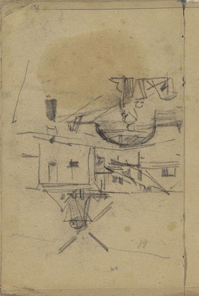 George Hendrik Breitner made this drawing of rooftops and chimneys with a pencil. The composition is a fascinating study in lines and angles. The lines form a network of geometric shapes that overlap and intersect, creating a sense of depth and complexity. Notice the way Breitner uses line-weight to suggest form and volume, the darker lines give a sense of mass, while the lighter lines fade into the background. The roofs and chimneys are rendered in simplified forms and basic lines, reducing the architectural elements to their most essential components. This simplification invites us to consider the underlying structure of the cityscape, revealing an order beneath the apparent chaos. This artwork engages with modern ideas about space and representation, suggesting a shift away from traditional perspective towards a more abstract and conceptual rendering of the world. The incompleteness of the sketch is not a shortcoming, but an invitation to the viewer to participate in the construction of meaning.