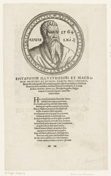 This engraving of Orazio Augenio was made by Jacques Granthomme in the 17th century. It reflects the cultural and intellectual values of the time. Augenio, a theologian, philosopher, and physician, is depicted within an elaborate frame, surrounded by Latin inscriptions that emphasize his wisdom and scholarly achievements. His aging face is rendered with great attention to detail, framed by a neatly trimmed beard and a high collared robe. The inscription mentions that his soul has returned to its maker, suggesting that the artwork was created posthumously. As with much portraiture of this period, this piece reflects the subject’s identity as an educated man of status. Though it memorializes a specific individual, it also speaks to the broader culture of humanism and the value placed on intellectual pursuits in the 17th century. This image serves not only as a representation of a man but also as a symbol of a time captivated by knowledge and discovery.