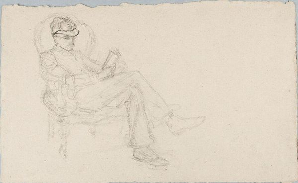 Editor: This is William Valentine Schevill’s "Sketch of a Seated Man," of unknown date, residing at the Harvard Art Museums. The sketch appears to be on aged paper, and the lines are so delicate. What can you tell me about it? Curator: I notice the artist's choice of a readily available material like paper and graphite. Consider the economics of art production, who had access to models or art instruction, and the role of drawing in academic training during Schevill's time. The paper itself, its quality and source, tells a story. Editor: That’s a great point. I hadn’t considered the implications of the materials themselves. Curator: How does understanding the material and the mode of production change your view? Editor: It makes me think about the accessibility of art and who gets to participate in its creation and consumption. Thanks!