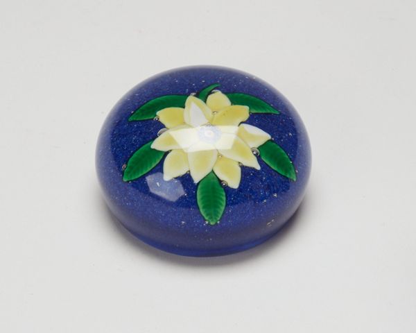 This glass paperweight was made by the Compagnie de Saint Louis and is now housed at the Art Institute of Chicago. The most striking feature of the paperweight is the embedded flower, its pastel pink petals contrasting against a speckled blue ground, all encapsulated in glass. The composition is simple yet deliberate. The flower, slightly off-center, invites the eye to orbit around the piece. The flower, with its radiating petals, disrupts the flat surface of the glass. This contrast between the natural form and the geometric shape creates a tension, reflecting the interplay between organic and constructed realities. Consider the semiotics at play: the flower, a universal symbol of beauty and fragility, is encased in a solid, almost protective medium. This juxtaposition challenges the viewer to consider themes of preservation, artifice, and the human desire to capture and hold onto beauty. It is a philosophical game, and one without a fixed end.