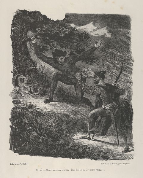 Here we see Gustave Doré's vision of "The Whore and The Giant." Doré's print plunges us into a scene thick with foreboding, composed of dense crosshatching that creates a rich, dark tapestry. Light struggles to penetrate, casting an eerie atmosphere over the figures and beasts. Doré masterfully employs line and shadow to evoke a sense of moral decay and monstrous alliance. The composition is structured to highlight the grotesque pairing of the figures, juxtaposed against a backdrop of twisted nature. This use of light and shadow serves to amplify the emotional impact, pulling us into a world where traditional values are inverted and the monstrous is celebrated. The formal elements—the stark contrast, the dynamic lines—are not merely aesthetic choices but function as symbolic markers, challenging our perceptions and engaging with a complex discourse on morality and power. This interplay of form and content invites us to question the established order and recognize the multiplicity of meanings within art.