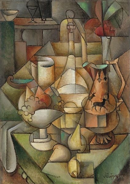 Picasso made this still life of bread and fruit with oil on canvas, and you can really feel the hand of the artist at work. The brushstrokes are loose, almost casual, but they build up to create a sense of volume and depth. The colors are earthy, warm browns and greens, with pops of bright yellow and orange that make the painting sing. I'm drawn to the way Picasso renders the table. It’s not just a flat surface; it's a collection of planes and angles, each catching the light in a different way. Look at how he uses short, choppy strokes to create the texture of the wood, and how he blends the colors to create a sense of shadow and highlight. It’s like he’s inviting us to really see the world, to break it down into its component parts and then put it back together again in a new way. You could compare this to Cezanne’s still life paintings, which also emphasize the underlying structure of objects. It's all part of the ongoing conversation that artists have with each other across time.