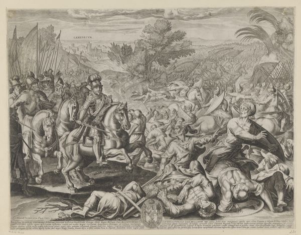 "Slag bij Las Navas de Tolosa" is an engraving made by Francesco Villamena, an Italian printmaker active in the late 16th and early 17th centuries. The image depicts a historical battle of 1212 between the Christian kingdoms of Spain and the Almohad Caliphate, a significant moment in the ‘Reconquista’. Villamena, however, was not Spanish, and neither was he alive to witness the event. So, what does it mean to see this moment through the lens of a 17th-century Italian artist? How did Villamena understand the narratives of power, religion, and identity at play in this battle? It invites us to reflect on how historical events are mediated and interpreted across different cultural contexts, and on the biases that might be embedded in these representations. The detailed depiction of violence is hard to ignore, yet it’s the composition that leaves a lasting impression, posing questions about the role of religion in shaping conflicts and the human cost of these clashes.