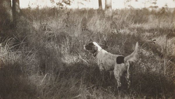 Editor: Robert Adams' "Longmont, Colorado," a gelatin silver print made sometime between 1982 and 1992, is strangely captivating. I am getting this unsettling feeling—something about seeing just this backside of the dog stuck halfway in the foliage is funny, sad, awkward... how do you interpret a work like this? Curator: That dog, half-eaten by greenery and shadow, seems to me like a fuzzy metaphor. Adams spent so much time documenting the American West – those bleached landscapes, the scars of development. Maybe this seemingly simple shot is a tongue-in-cheek portrait of suburbia slowly, almost comically, consuming everything wild? Does it strike you as funny, or is something else poking at you? Editor: Well, there is a comedic side, for sure. But looking at the sharp contrast of the black and white, and how the fur almost glows… it’s like a little beacon in this ordinary place. Makes me wonder if Adams saw something special even in the mundane. Curator: Exactly! It's a gentle subversion, don't you think? This image invites us to pause. Is this animal lost? Or are we lost to the natural world in our suburban trappings? Editor: So, a sad photo but also an ironic symbol? A bit unsettling, but very interesting. Curator: And like any good work of art, we carry away with us whatever meanings have decided to take root, so to speak. Thanks for that wonderful perspective.