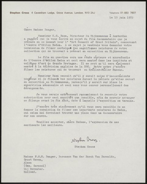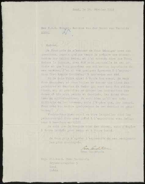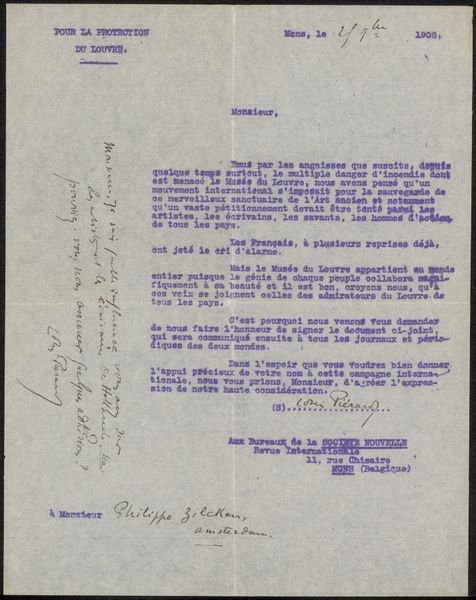 This is a letter from Jan Veth to Jan Kalff Jr, written in 1905. You can see in the typewriter marks and the texture of the page, an understanding of artmaking as a process. The letter is a physical object, with a color and surface that affects how we emotionally experience it. It feels immediate, as if we are intruding on a personal communication. There's a handwritten date at the top, scrawled in ink, like a little flourish. It's not just information; it's a gesture. There's a raw, unedited quality to the letter that's really interesting. It reminds me a bit of Van Gogh's letters to his brother Theo, where you get this direct line into the artist's mind and process. Art is an ongoing conversation and exchange of ideas across time, which embraces ambiguity.
