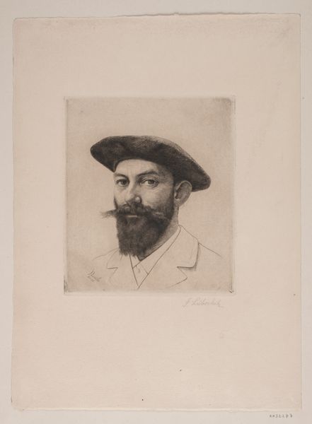 Jan Veth created this portrait of a bearded man with a hat in monochrome, with lines of soft charcoal. The man’s contemplative gaze and the muted tones evoke a sense of introspection. Veth’s deliberate composition guides the viewer’s eye from the detailed rendering of the face and beard, to the more ambiguous shapes of the hat and coat. The subtle gradations in tone and texture give the work a distinctive sense of depth. This is achieved through careful shading and blending, creating a soft, almost dreamlike quality. The artist's ability to capture the sitter's likeness and character while maintaining a certain level of formal abstraction is notable. The portrait destabilizes the traditional representational art as it is more focused on conveying a mood and inviting contemplation. It emphasizes the expressive qualities of the medium itself.