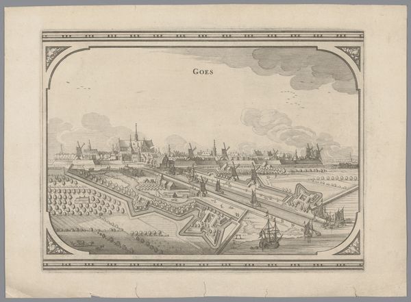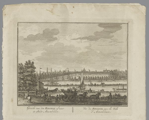 Curator: This is an etching titled “Gezicht op Göttingen,” or “View of Göttingen,” likely made between 1770 and 1818 by an anonymous artist. Editor: Göttingen seems quiet here. A neatly ordered little world, with precise lines defining its place in the landscape. Curator: It really encapsulates the style of both Neoclassicism and early Romanticism – an intriguing intersection of order and emotion. Consider the line work. See how detailed, precise it is, especially in the architecture? And, how this contrasts with the feathery textures in the trees. Editor: I am always thinking about the matrix, the plate... the labor involved in producing such linear precision via the intaglio printmaking process—biting, etching, wiping. The material production shaped the look as much as any artistic intention, and the resulting circulation of the print meant these ordered vistas of German towns would proliferate and circulate. Curator: Yes! This reproduction aided the growth of a shared experience of the region. And looking closer, one can sense an emerging interest in realism mingling with the traditional landscape view. Notice how they tried to render cloud formation, for example? Or even capture grazing cattle in the field? It moves past idealization into the observational. It has an incredible meditative aspect; I could get lost staring for a while. Editor: Agreed, there’s a distinct move here to make the medium mimic life. It speaks to the growing accessibility of knowledge and aesthetics – prints democratizing art and vistas. Plus, each print would hold small variations, creating distinct moments for artist and owner. Curator: Absolutely. I see in it an early stir of Romanticism’s emphasis on lived experience, captured by a mind with real, precise intent. It makes me consider who exactly might have commissioned or purchased it at the time. Editor: A burgeoning middle class with an appreciation for a good etching and a desire to possess their environment through representational means. Fascinating how the layers of craft and ownership intersect in a print like this.