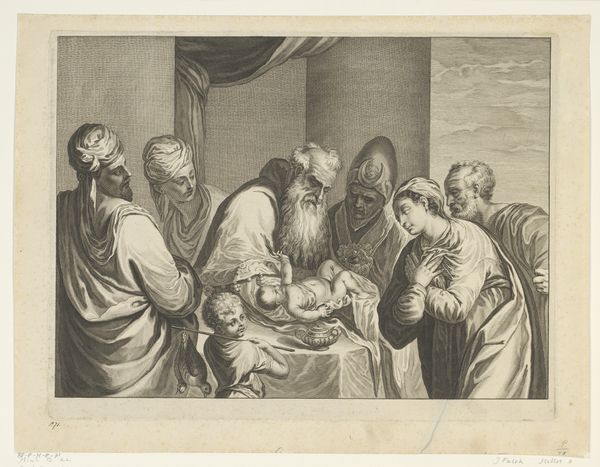 This engraving, after a painting by Guido Reni, shows the Holy Family in quiet contemplation. It was made by an anonymous printmaker, who skillfully used line to translate paint to a reproducible image. Look closely, and you can see how the varying thickness and density of etched lines create areas of light and shadow. This would have been a labor-intensive process, requiring careful planning and precise execution. The matrix would have been a copper plate. The engraver would have used a tool called a burin to cut lines into the surface, which would then hold ink for printing. While this print reproduces a composition by a celebrated artist, it also speaks to a different kind of artistic production. Printmaking was a vital industry, allowing for the wide dissemination of images and ideas. It depended on skilled artisans, whose work often went uncredited, yet who played a crucial role in shaping visual culture. Considering this print, we can broaden our understanding of artistic creation to include the skilled labor of reproduction, and the social context in which images circulate.