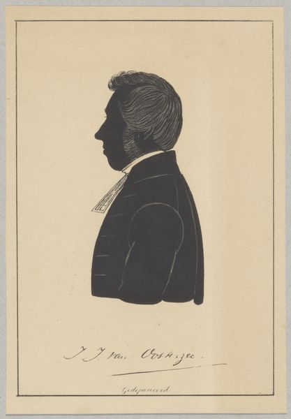 This is a silhouette portrait of Bernard ter Haar, made by Pieter Barbiers IV. Here, we see a profile—a form that echoes ancient coins and cameos, immortalizing the sitter in a stark, simple form. Notice the prominent star on Bernard ter Haar’s chest. Such emblems of honor are laden with aspirations of glory and recognition. We might recall similar displays of status in Renaissance portraits, where coats of arms and symbols of office served to elevate the subject. This symbol speaks to a deep-seated human desire for acknowledgement and a place within a structured hierarchy. The profile view itself has a curious psychological effect; it conceals as much as it reveals, inviting speculation about the sitter's hidden depths. This play of visibility and concealment taps into our innate curiosity and desire to understand the inner lives of others. The silhouette revives across centuries, each time adapting, yet always retaining a link to its ancestral forms and the powerful emotions they evoke.