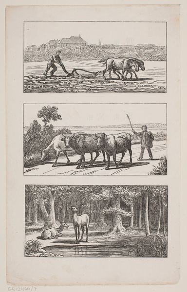 Curator: "Le Verveux; from Magasin Pittoresque" is the work, an engraving by Charles Jacque, created sometime between 1848 and 1864. Editor: The scene has a tranquil, almost melancholy air. The dark, dense foliage is so closely intertwined it appears impenetrable, framing a seemingly still body of water. The mood strikes me as somewhat melancholic, almost brooding. Curator: It's a Romantic depiction tinged with Realism, reflective of Jacque's broader artistic approach. The image portrays a fishing scene, with two figures in a small boat on a river or stream. It originally appeared in "Magasin Pittoresque", which sought to popularize knowledge and culture through accessible imagery. Editor: Right, the ‘picturesque’ aspect— the workers in the boat seem like a part of the idyllic natural environment but are engaging with nature’s exploitation at the same time. The detail in the trees is striking, and even the way the figures are rendered gives them this weightiness, as if to highlight humans are part of the scenery. Curator: Absolutely. It's important to remember the social context. Genre paintings like this were popular among the rising middle class. They depicted scenes of everyday life, offering a glimpse into rural existence. But they also played a role in constructing idealized versions of the French countryside, subtly reinforcing ideas about national identity. Editor: And by focusing on labor, images like this obscure its exploitative dimensions by centering labor within pleasant, accessible aesthetics. The figures become archetypes stripped of social identities, which further pushes an abstract sense of harmony onto a lived reality defined by deep inequality. Curator: Exactly, Jacque and others took great inspiration from the Dutch Golden Age masters who explored similar themes. He clearly wants us to appreciate the workers but, at the same time, there's no critique or analysis of those power structures in play. Instead, the labor is subsumed by an admiration for the "picturesque," to your point. Editor: Considering Jacque’s association with the Barbizon school—he lived in Barbizon starting around 1849-- it might also speak to the group's political position towards agrarian societies, in alignment with peasant populations increasingly coming into modernity. Curator: That said, I would have liked to see some more nuanced social and historical contexts included here at the Met around this fascinating piece. Editor: Perhaps more information, but it's a stunning piece that provokes deep thought about human interaction with the natural world.