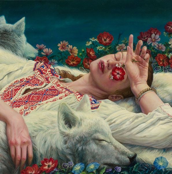 Rose Freymuth-Frazier made this painting called "Painted Ladies," and you can see how the layers of oil paint give a real depth to the dark, moody atmosphere. It's like stepping into a dream, right? The way she handles the paint, it's not just about showing us what's there, but hinting at what's beneath, all the things that linger in the shadows. And there are all kinds of contrasts here, the way that the artist contrasts shadow with light, and warm hues with cool blues. I mean, check out the roses and butterflies scattered on the blue divan and how they almost seem to pop out at you. And those roses by her bosom – they are repeated in the pattern of her silky smoking robe, so they’re connected to the space and the figure. It reminds me of the work of Marlene Dumas; it’s a similar exploration of the female form, not just as a subject but as a vessel for complex emotions. And like all good art, it leaves you with more questions than answers, which is how it should be!
