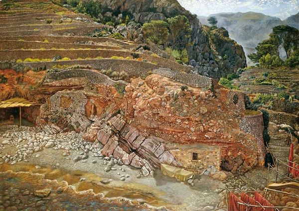 Editor: Here we have Fyodor Bronnikov's "Landscape with Ruins," an oil painting, likely from the 19th century. I’m struck by the contrast between the decay of the ruins in the foreground and the seemingly peaceful landscape stretching out behind it. What’s your take on this piece? Curator: I see in it a reflection on power and its impermanence. These aren't just ruins; they're remnants of a structure, a civilization, that once exerted dominance over this very landscape. Consider how the artist positions them: foregrounded, yet overtaken by nature. It begs the question: what structures, physical or societal, are we building today that will similarly crumble? Editor: So, you’re suggesting that the ruins symbolize the decline of power structures? That's a very contemporary reading. Curator: Absolutely. The landscape isn't merely a backdrop; it's an active force reclaiming what was once taken. Think about the history of land ownership and access, who benefited from the structures, and who was excluded. Bronnikov might be subtly commenting on those power dynamics, even unintentionally. Where do we locate resistance and resilience? Editor: I never considered it from that angle. I was focused on the romantic aspect of ruins and nature, you know, the sublime and all that. Curator: And that reading holds weight, certainly! But romanticism itself can be seen as a reaction to societal changes, a yearning for something "lost" – often a highly selective and biased nostalgia. By situating the painting within broader sociopolitical contexts, we reveal multiple layers of meaning. It asks us to consider whose stories are centered and whose are marginalized, then and now. Editor: That gives me a lot to think about in terms of contemporary interpretations of landscape art. Curator: Exactly. Art like this challenges us to look beyond surface beauty and engage with the deeper implications of what we see and how we see it.