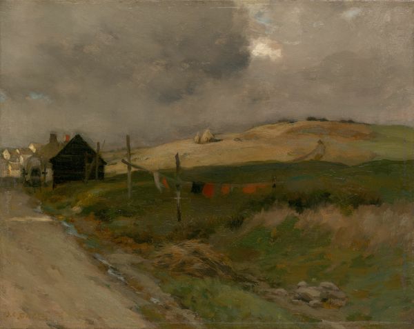 "At Shinnecock Hills" is an oil on canvas painting by William Merritt Chase. Chase's work is often read in relation to the emerging leisure class of the late 19th century, but this painting invites us to consider more than just the pleasures of landscape. Chase was central to the Shinnecock Hills Summer School of Art, established in 1891, near an area inhabited by the Shinnecock Nation. The forced removal and cultural erasure of Indigenous people was critical to the creation of spaces like Shinnecock Hills. The painting evokes a sense of quiet solitude, yet it cannot be divorced from its historical context. The very ground Chase painted on carries a complex history of displacement and cultural disruption. It is important to consider the narratives that are absent, as well as those that are present, reflecting on how landscape painting can both reveal and conceal the histories embedded within the land.