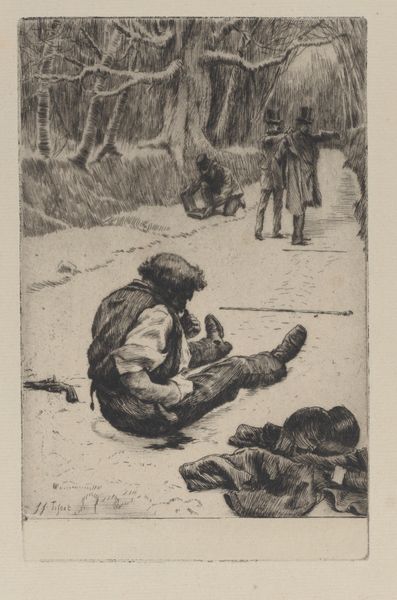 Jean-François Millet etched "Man Threshing Wheat" to capture a timeless scene of rural labor. The central figure, caught mid-swing with his flail, evokes a sense of the cyclical nature of life. This gesture, the raised arms and forceful downward motion, echoes across centuries, reminding us of ancient rituals and agricultural practices. Consider the Minoan Harvesters Vase, where similar movements celebrate the harvest with rhythmic energy. Millet’s thresher, though, is imbued with a different spirit—one of stoic determination. The act of threshing itself is a microcosm of human effort against the earth's bounty. The image stirs something primal, a collective memory of our dependence on the land. It speaks to the psychological weight of labor, the constant push and pull between man and nature. This humble scene then transforms into an archetype of human resilience.