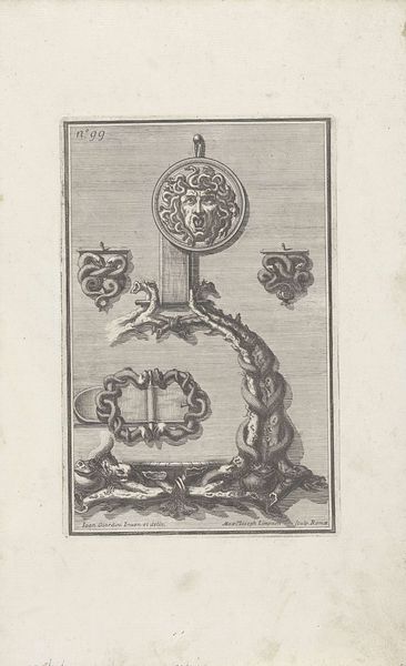 Editor: Here we have "Seals of the University of Leiden, with names of the professors and the coat of arms of the university," dating from 1685 to 1720, rendered in ink using engraving techniques. The tight, circular composition makes my eyes dart around the piece. How do you interpret this work formally? Curator: Intriguing. Let us focus on the intrinsic properties. The circular forms immediately establish a sense of unity, yet the division into two distinct circles creates a dialogue. The upper circle's central figure stands erect, while the lower circle presents a heraldic lion. Note the dense inscription encircling each image. Do you see how the text functions not just as content, but as a visual element, a textural ring? Editor: Yes, the lettering creates a very strong sense of pattern. Almost like the bands on a tree trunk showing its age. But why circles? Curator: Circles are recurring motifs in art, aren't they? We are trained to consider formal elements without immediate references to symbolic associations. Here, the circles suggest completeness, an enclosure, or perhaps a visual echo of seals, reiterating the artwork’s own content. How does the line quality contribute to your understanding? Editor: The lines are so fine and precise, which must have taken immense skill, especially in those tight curves. It creates a sense of formality and precision. Is that purely aesthetic, or could it have been intentional? Curator: Form and intention are intertwined. Consider the medium of engraving. Each line is deliberate, immutable. The artist's control is evident in every mark. I find that detail far more relevant than the nominal context. Does analysing it like this influence how you see it now? Editor: Definitely. Seeing the geometric structure, and appreciating the density of line, shifts it away from just an historical document and towards an artwork. I'm thinking much more about technique than meaning. Curator: Precisely. The aesthetic decisions become as central as the historical content. We see this Baroque piece with fresh eyes now, perhaps? Editor: I've certainly learned to consider artwork from a formalist view and it provides an interesting, if less historical context, than I expected.