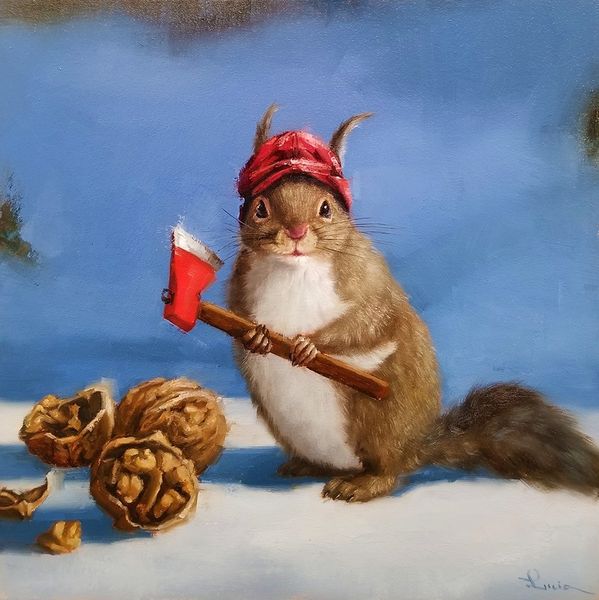 Lucia Heffernan created this satirical painting, "When The Campers Are Away," with oils on canvas. This reflects a tradition going back centuries, where artists have painstakingly built up images using thin layers of pigmented oil. The smooth surface of the canvas allows for a high degree of illusionism. But what makes this painting resonate today is its subject: a wild animal, cheekily enjoying the fruits of human leisure. The marmot, with its Aperol spritz and iPhone, invites us to consider the blurring lines between the natural and the manufactured. Of course, oil paint itself has a long relationship with capitalism. From the pigments to the canvas, every element is commodified. Heffernan plays with this history, offering a humorous commentary on our contemporary moment. The painting encourages a broader conversation about the role of material culture in shaping our understanding of nature, and the labor of producing images.
