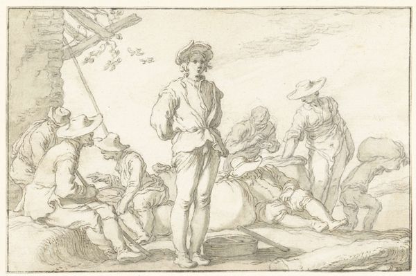 Frederick Bloemaert created this image of September in Amsterdam, capturing a moment of rest and labor. September, marking the harvest season, is a potent symbol in this image. The laborers are adorned with wide-brimmed hats, reminiscent of the protective headgear worn in ancient agricultural rites. The act of toiling in the fields, itself an ancient and universal motif, echoes through time. We see similar scenes in Egyptian tomb paintings and Roman mosaics, always representing the cyclical nature of life, death, and rebirth. Note the figure drawing water on the left of the image. The workers’ rest carries the weight of human history and the innate connection with the earth, an eternal cycle that resonates with our collective memory, evoking both the bounty and the burdens of the season. The workers' calm acceptance of their labor evokes a psychological depth, reminding us of the profound, subconscious connection we have to the land. This image thus taps into a reservoir of shared human experience, reflecting the timeless rhythm of labor.