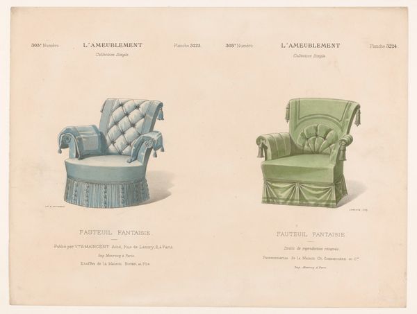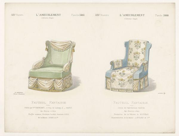 Here we see Léon Laroche’s lithographic print, "Twee fauteuils," featuring designs for two armchairs. This print offers a glimpse into the domestic life and interior design trends of its time. These armchairs, objects of comfort and status, reflect the values and aesthetic preferences of the bourgeoisie, evoking the era’s emphasis on refinement and domesticity. The designs promote traditional notions of domesticity and the gendered division of space. The armchairs, with their elaborate ornamentation and plush upholstery, suggest a world of leisure and privilege. Yet, they also speak to the labor and materials sourced globally. They are representative of colonialism, and speak to the exploitation of resources and labor that underpinned European wealth. As you consider these armchairs, think about how even everyday objects carry the weight of history and reflect the complex interplay of identity, power, and representation.