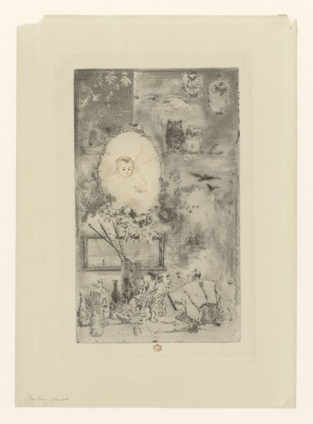 Curator: This is titled "Blad met studies van hoofden" – "Sheet with studies of heads"– a pen and ink drawing, by Polynice Auguste Viette, created sometime between 1824 and 1891. What's your initial take? Editor: There's an energy in it! A nervous, quicksilver feel. All these different faces, seemingly observed at different times. Like catching fleeting thoughts. Curator: It feels like a personal sketchbook page. A mind at work. There's something so intimate about seeing these glimpses, right? The artist wasn't necessarily thinking of an audience. Editor: Precisely! And that’s what’s fascinating. It has a wonderfully unfinished quality. I keep getting drawn to the man in profile at the bottom— he feels like a classical Roman bust somehow rendered with very modern, anxious lines. Curator: It speaks to the way classical art continued to influence artistic practice through the 19th century, especially as an exercise for honing skills of observation. It looks like Viette practiced capturing quick character sketches, playing with light and shadow. Look at the expressive hatching. Editor: You're spot on. The figure above him, though... With the ornate dress, beard, and what appears to be a smaller head resting on top! Do you think there is symbolic significance at work here? Or a satirical wink? Curator: Perhaps! Consider the historical context. This period sees increasing interest in caricature and social commentary. Maybe he's poking fun at figures of authority. We should look into this particular symbolism within Viette’s broader oeuvre. Editor: Absolutely! And it hints at art as a tool for playful invention. The images invite viewers into an engaging, almost dreamlike visual game. Curator: Indeed. Looking at this work has brought me closer to Viette, his processes, perhaps, even the spirit of his time. It reminds us that even quick sketches can be surprisingly revealing. Editor: Yes, the sketch, in all its fleeting energy, really opens up something essential and enduring about what it means to see—and to be seen.