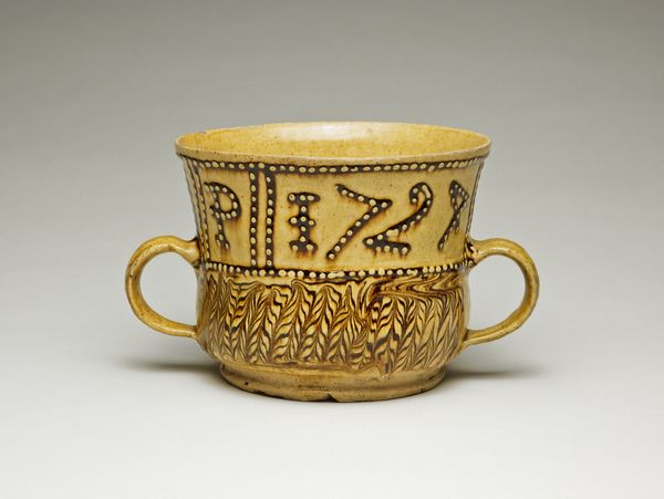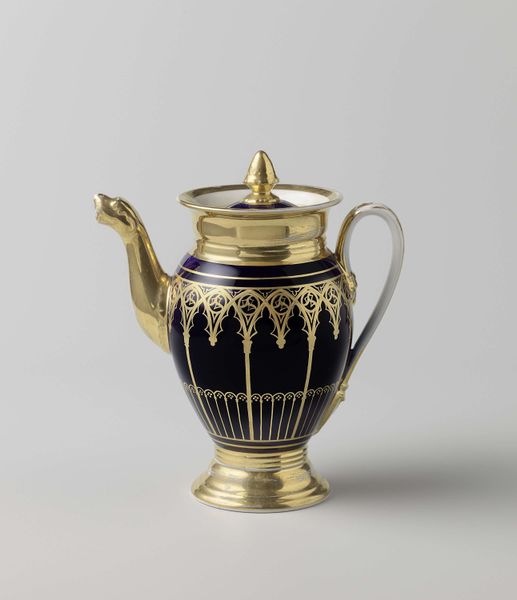 This Coalport teacup, now at the Metropolitan Museum of Art, invites us to consider the interplay between form and function through its ornate design. The teacup’s dark blue ground is punctuated by a series of stylized floral motifs, rendered in raised enamel. Alternating colors of turquoise and red draw the eye across the surface, creating a visual rhythm that is both decorative and engaging. The golden rim and handle offer a contrasting opulence, framing the cup with a metallic sheen that speaks to its intended luxury. This object transcends mere utility. The teacup uses visual language of wealth and taste, reflecting the cultural values of its time. The cup's structured design presents a semiotic system where color, pattern, and material converge to communicate status and refinement. Consider how the teacup, in its delicate composition, represents not only a vessel for tea, but also a potent symbol of social rituals and aesthetic sensibilities.