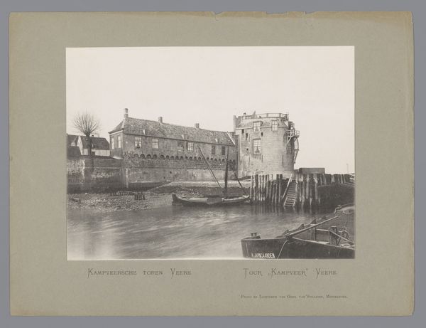 Editor: This is a photograph titled "Gezicht op Straatsburg met de Ill," created before 1894 by Charles Bernhoeft. It's a vintage print on paper, and it strikes me as very peaceful, almost like a memory fading into time. What do you see in this piece? Curator: Initially, one observes the meticulous arrangement of tonal values. Notice the composition, particularly how the receding perspective draws the eye along the river Ill. The contrast between the solid forms of the buildings and the reflected light on the water creates a visually interesting interplay. Editor: The reflections are quite striking, now that you mention it. Does the materiality of the paper contribute to the overall impact? Curator: Indubitably. The texture of the aged paper, likely a deliberate choice by the artist, enhances the photograph's visual depth. It softens the overall image, imparting a nostalgic quality that aligns perfectly with the subject matter, doesn’t it? Editor: I hadn't considered the impact of the paper itself so deeply. So, by focusing on these aspects - composition, tone, and the materials - we can uncover deeper meaning in a photograph like this, without relying on historical context? Curator: Precisely. While historical context certainly enriches our understanding, a formalist approach prioritizes the artwork’s inherent visual language. Analyzing these elements reveals the photograph's intrinsic qualities and its aesthetic impact. Editor: I see, focusing on how the formal elements communicate meaning. Thank you, I learned so much looking at this with you. Curator: You are most welcome. The true value lies in fostering a more critical understanding of art through considered observations.