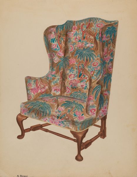 This 'Side Chair', made by Ruth Bialostosky, is awash with a beautiful, dark red watercolor that gives the impression of a velvet surface with a beautiful floral design. It's all about how the artist uses the watercolor medium to bring out the texture, color, and surface of the chair. You can almost feel the soft give of the fabric, or the solidness of the wooden frame. Bialostosky handles the watercolor with care; it’s neither too thick nor too thin, allowing the texture of the paper to peek through, which gives the painting a gentle, airy feel. Look closely at the way the shadows play around the legs of the chair – see how they ground it, making it feel present and real. It makes me think a little bit of Fairfield Porter, in the way it captures a domestic scene with such quiet intensity. But Bialostosky has her own voice, her own way of seeing the world. And in the end, that’s what art is all about: finding your own way to speak, to see, to be.