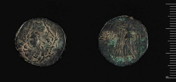 Curator: This is an Antoninianus of Cornelia Salonina, likely minted in Mediolanum, which was Roman Gaul, during her reign as empress. The weight is just over 3.5 grams. Editor: The coin has such a palpable aura of age and use. It is also very small. It really makes one wonder about the hands it passed through and how the materials have transformed over time. Curator: Absolutely. As Salonina, the wife of Emperor Gallienus, she occupied a unique, though often unstable, position in a male-dominated power structure. Coins like these were not just currency; they were a form of propaganda, reinforcing her image and role within the Roman Empire, though her power ended with Gallienus's assasination. Editor: Seeing how worn the coin is, you almost feel the labor involved in creating it, the materials extracted and processed. It is humbling to consider the raw matter, human action, and social relations embedded in such an object. Curator: It’s true, the coin embodies the complex intersection of gender, power, and representation within the socio-political context of the Roman Empire. Thank you. Editor: And the material conditions that made that intersection possible.