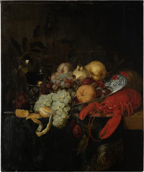 Harmen Loeding painted "Still Life with Fruit and a Chinese Porcelain Bowl with Strawberries" sometime in the mid-17th century. During this period, the Dutch Golden Age, still life paintings served as symbolic reflections of the era’s prosperity, trade, and evolving cultural identity. Loeding’s painting intertwines these elements through its display of diverse fruits and a striking Chinese porcelain bowl. This bowl, filled with strawberries, represents the global trade networks that enriched the Netherlands, but also hints at the exploitation and cultural exchange that came with it. The sumptuous fruits suggest a celebration of abundance and sensory pleasure, yet the dark background and careful arrangement evoke a sense of transience. Loeding masterfully balances these societal narratives with an intimate portrayal of life's fleeting beauty, inviting us to consider the complex layers of history embedded in such seemingly simple objects.
